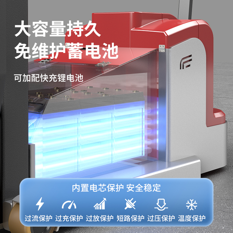 揚子堆高車CPDB:精工鍛造有效載荷高,車身輕,強度高,穩定性能好,一體鑄造油缸,載荷更大杜絕漏油。還有手動緩降控制閥門,采用高性能免維護電池組