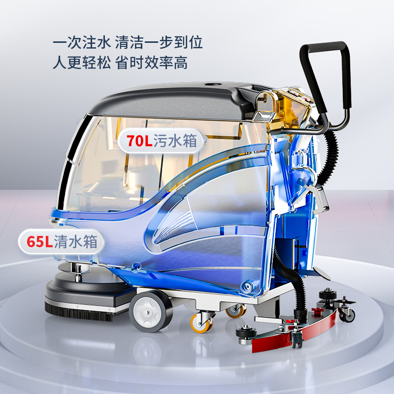 揚子洗地機YZ-X2,65L清水箱,70L污水箱,大容量一箱水輕松搞定,大續航一次充電可用3-4小時,續航持久效率翻倍。