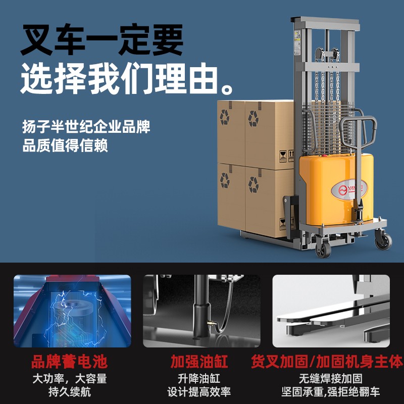揚(yáng)子YZ-B系列步行式半電動(dòng)堆高車:自動(dòng)液壓叉車,半電動(dòng)推高車的使用多功能簡潔操作臺,可以有效的防止車子在卸貨當(dāng)中出現(xiàn)滑動(dòng)現(xiàn)象。加強(qiáng)油缸安全使用,更能提升效率的使用。